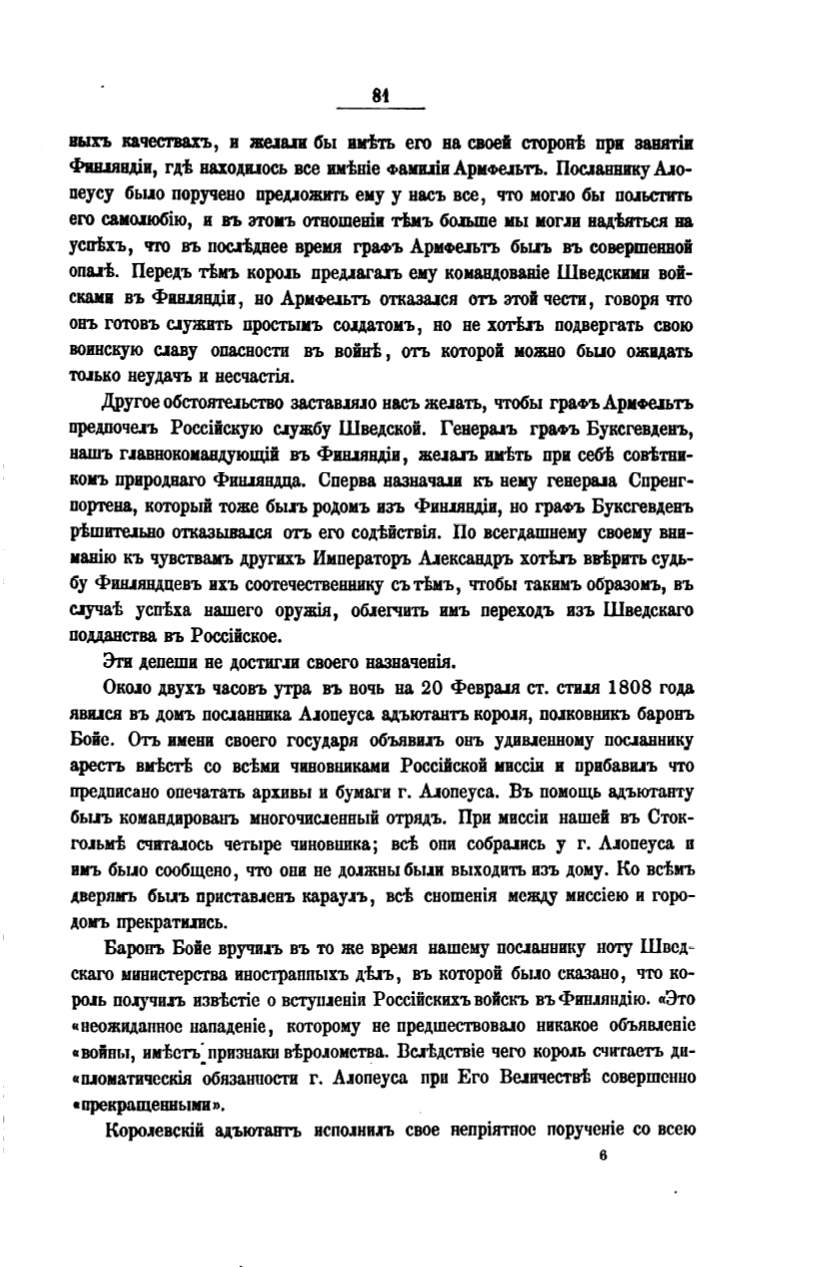 роJЬ ПОJУЧИJЪ взвtстiе о вcтyiJJeuiп Россiйскихъ войскъ въ Фив.1яндiю. «Это