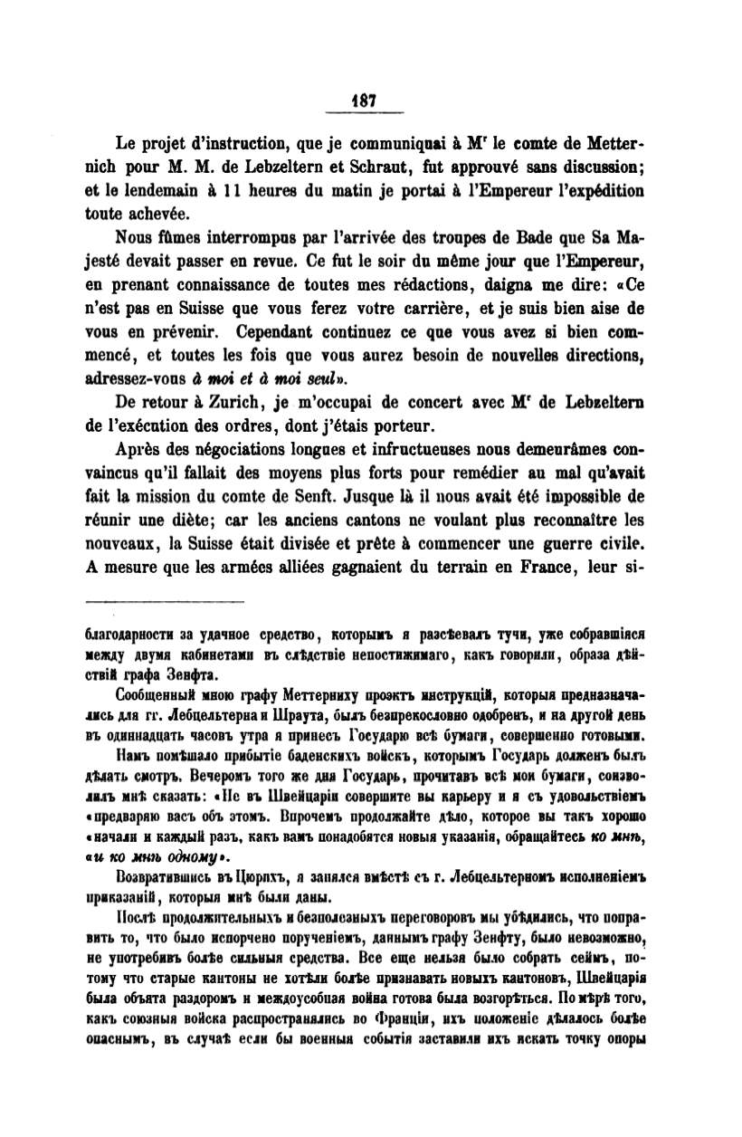 fait la mission du comte de Senft. Jusque