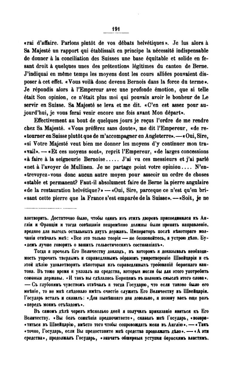 cde la restauration belvetique?•- «Oui, Sire, parceque