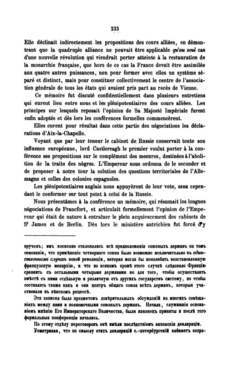 principes sur lesquels reposait l'opinion de Sa Majeste lmperiale furent