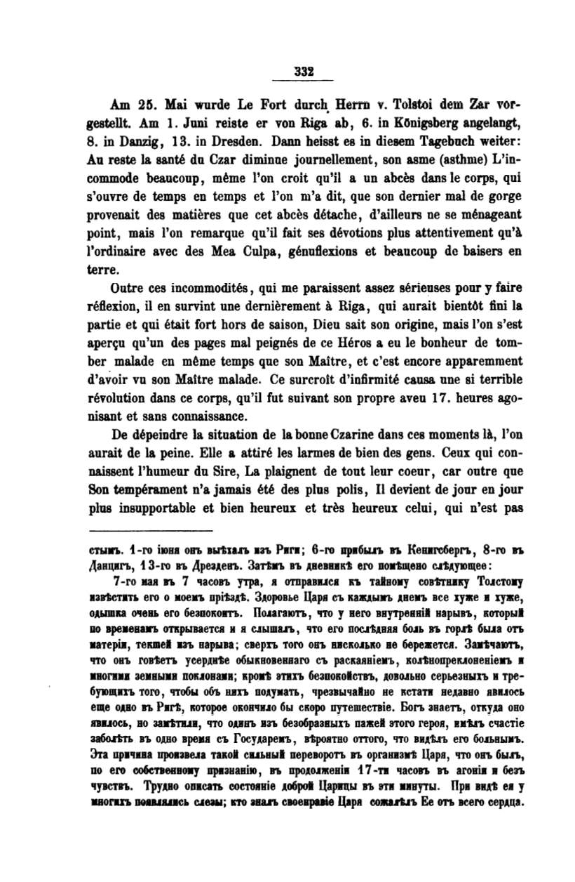 Mai wurde Le Fort dorch. Herm v. Tolstoi dem Zar vor–