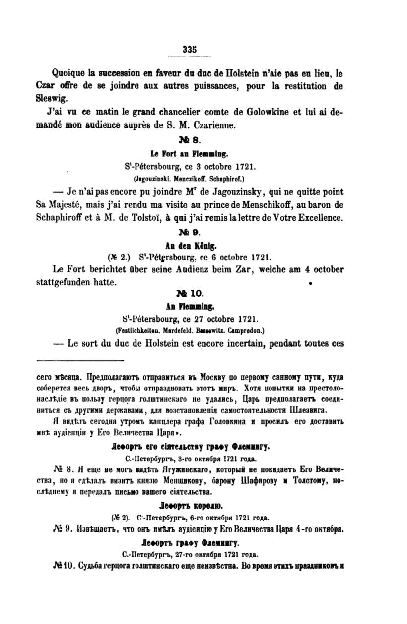 mais j'ai rendu ma visite au prince de Menschikotr, au baron de