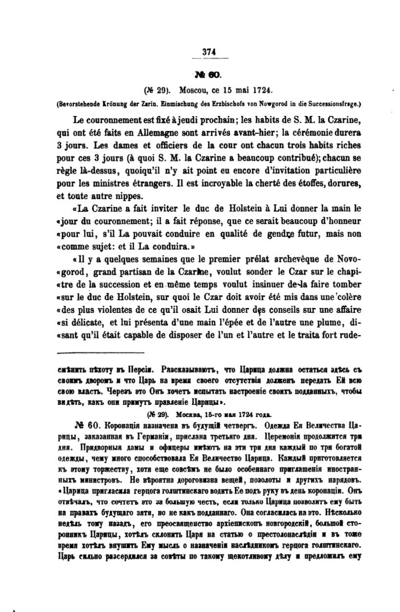 «sur le duc de Holstein, sur quoi le Czar doit avoir ete mis dans une !colere