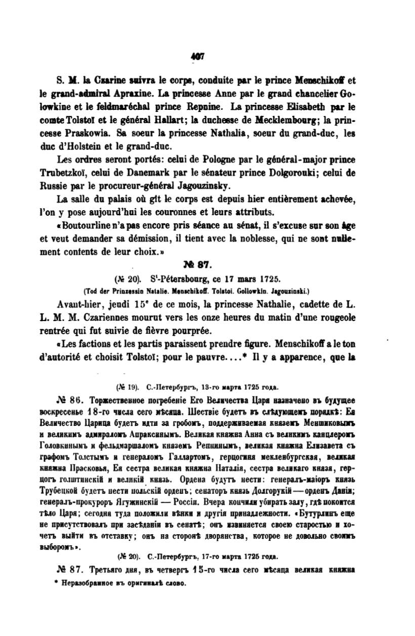 •Les factions et les partis paraissent prendre figure. Menschikoff