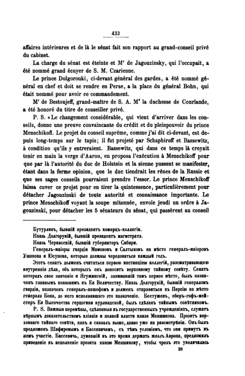 прнвеАевiе В'Ь испо.о~невiе проакта киааtо Меншикову, чтобы чреаъ зто увеоч1.аась