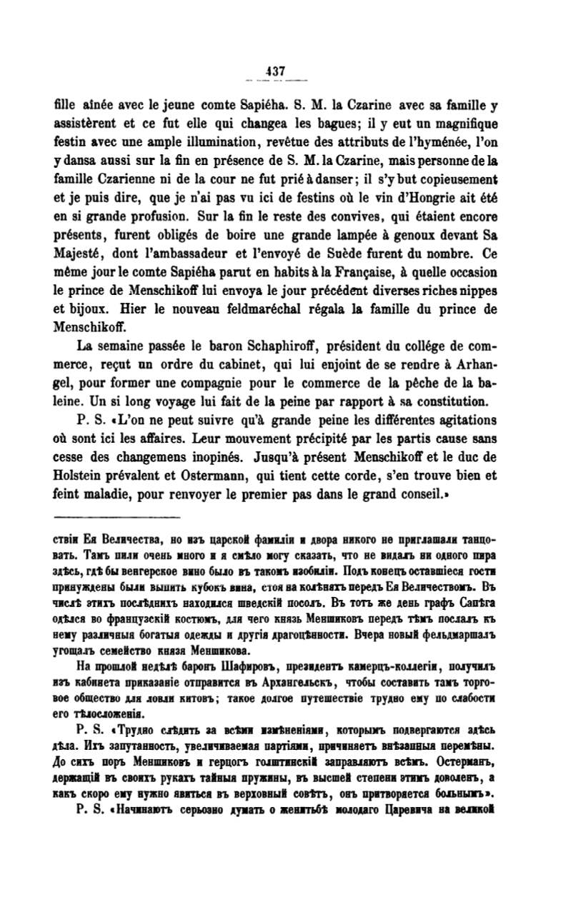 чвс.1t втиrь пооп..нихъ вахоАuса mвeAcкilt посо.sъ. Въ тотъ же Аень rрафъ Сапtга
