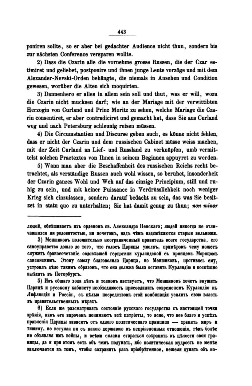 dass er nicht der Czarin nnd dem rnssiscben Cablnet mflsse weiss macheo,