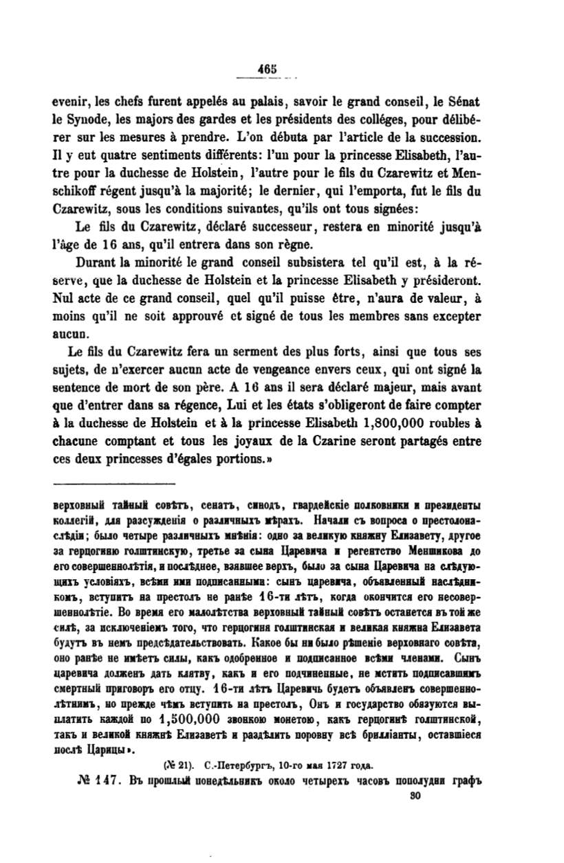 Le fils du Czarewitz, declare successeur, restera en minorite jusqu'A