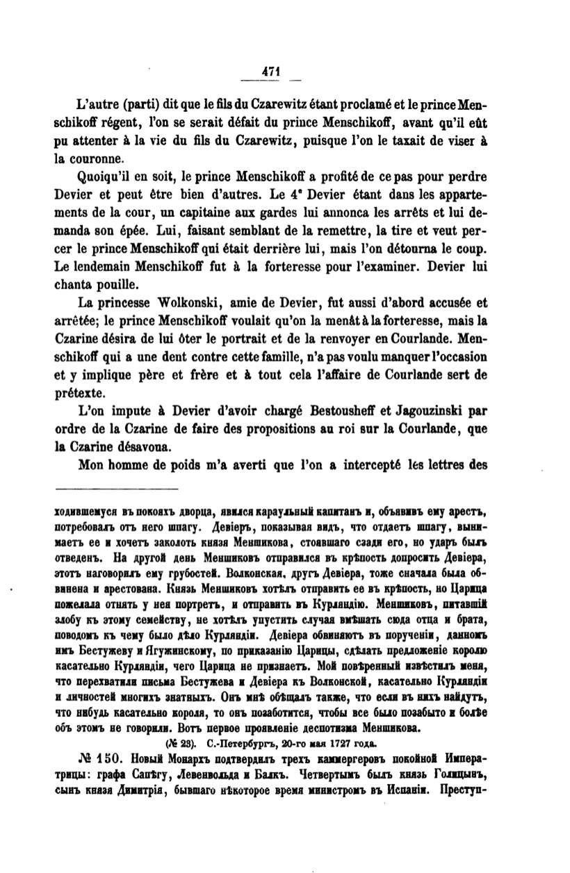 что перехватв.ав письма Бестужева в Девiера къ ВолконскоМ