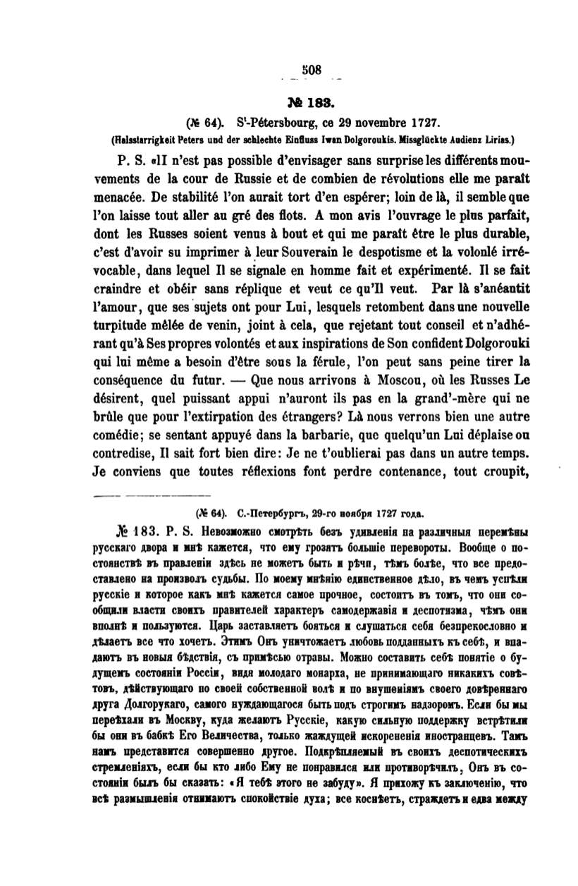 rant qu'a Ses propres volontes et aux inspirations de Son confident Dolgorouki