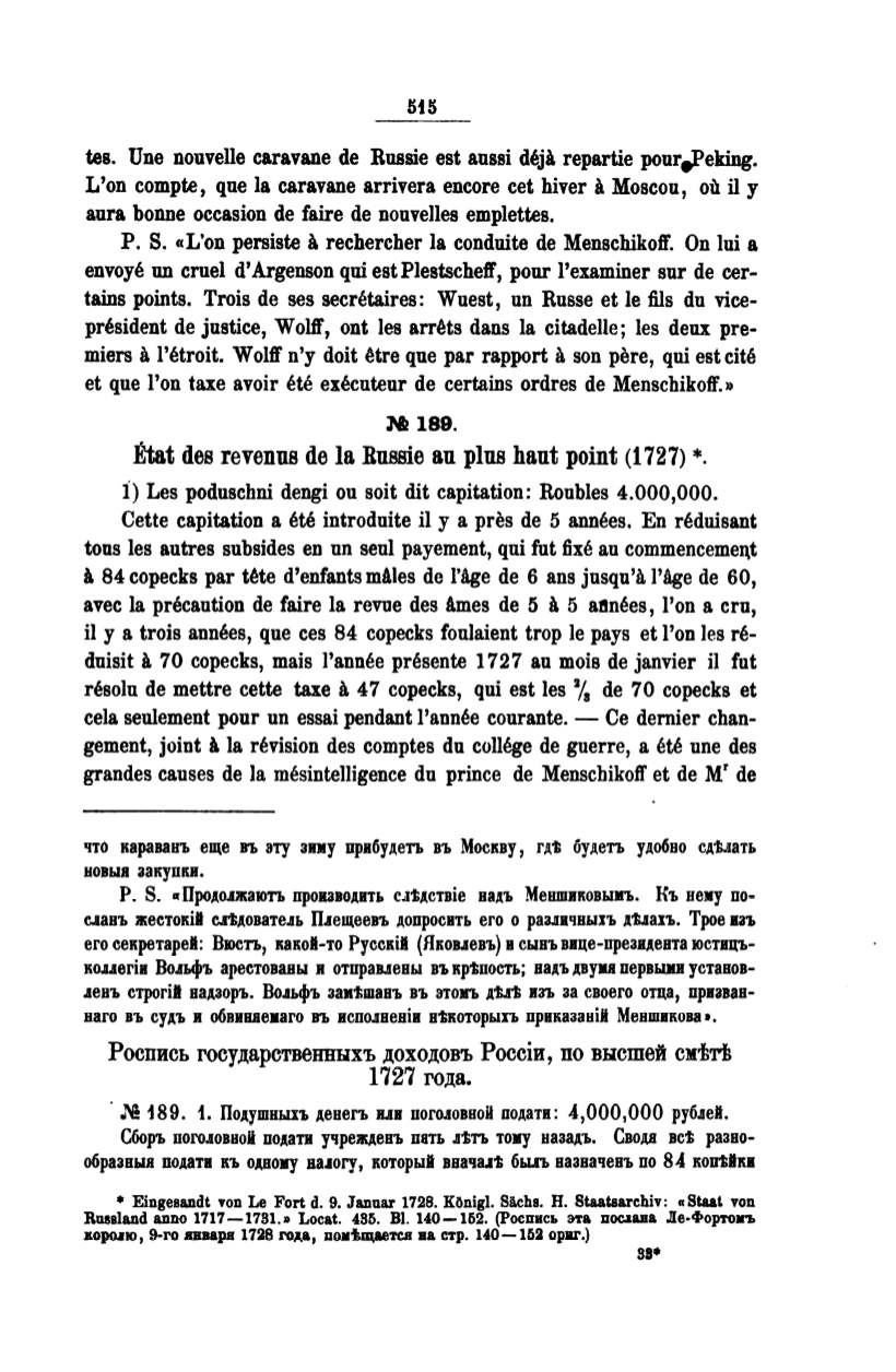 et que l'on taxe avoir ete executeur de certains ordres de Menschikoff.»
