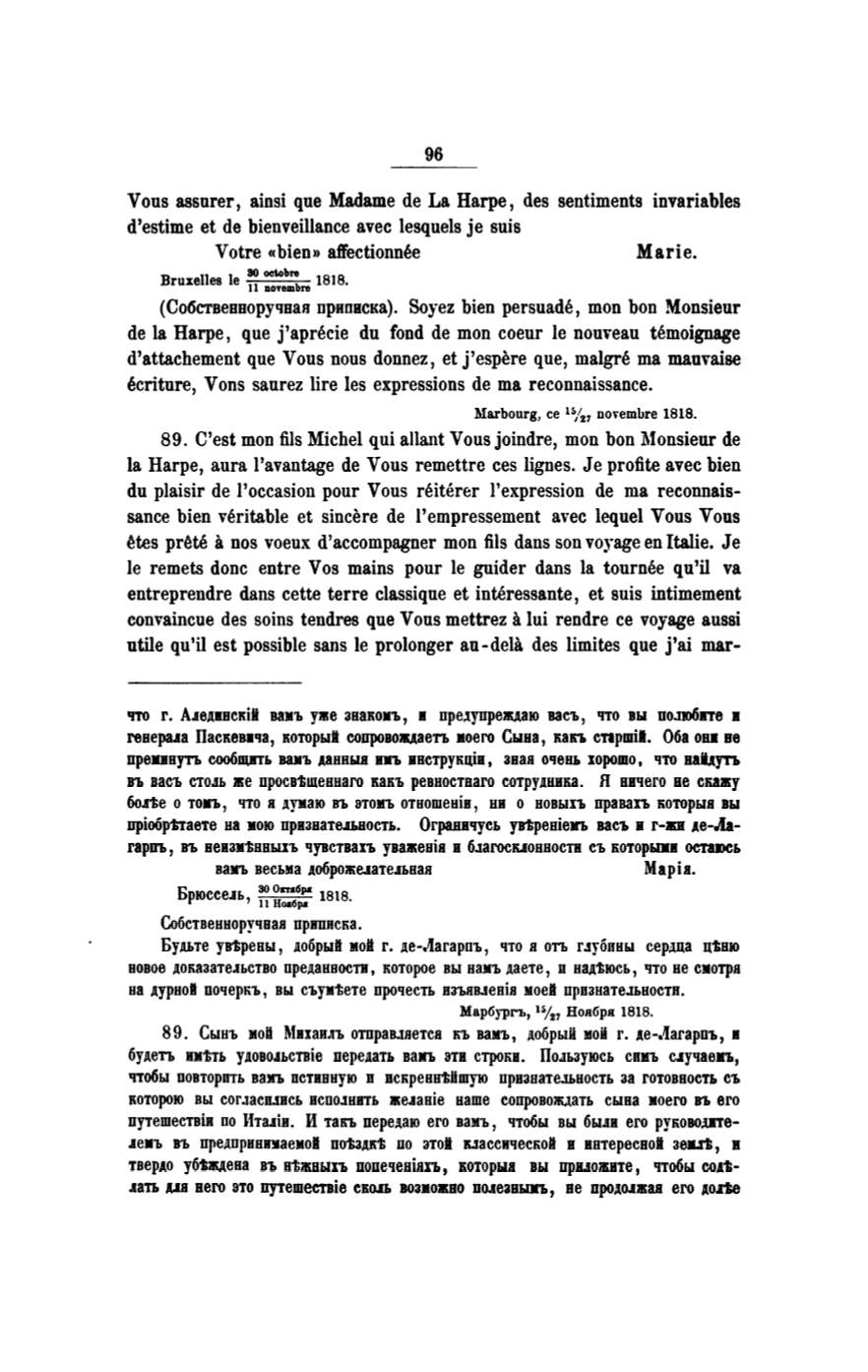 la Harpe, aura l'avantage de Vous remettre ces lignes. Je profite avec