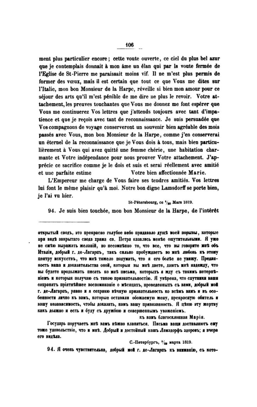 L'Empereur me charge de Vous faire ses teudrcs amities. Vos lettres
