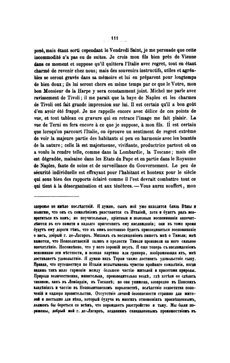 moment et suppose qu'il quittera l'Italie avec regret, tout en etant