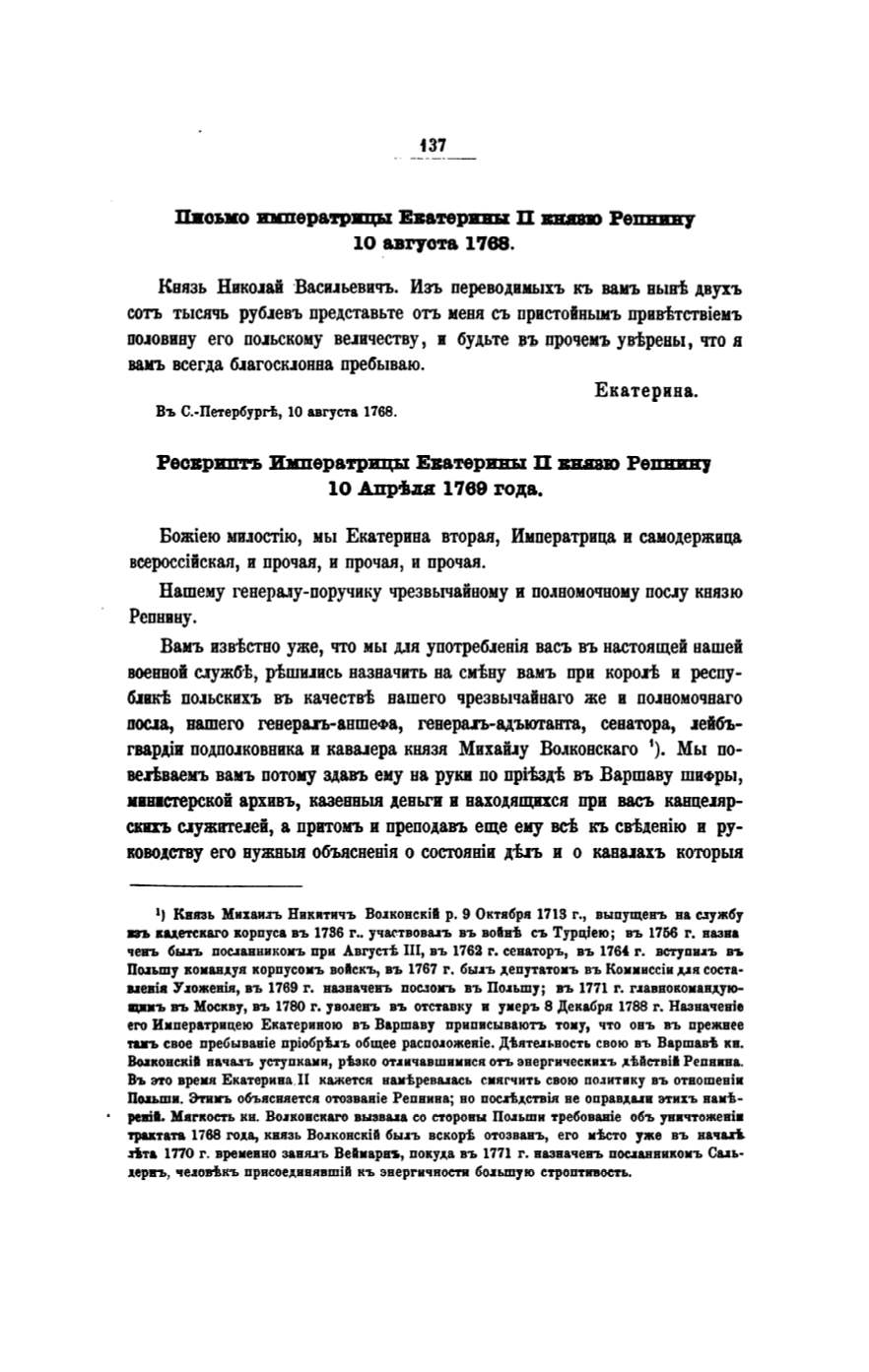Поаьши. ЭоrиiiЪ объвсвяется отоававiе Репнина; во оос.аf.,J.ствiя ве оправ,J.uв этиs:ъ вакt.