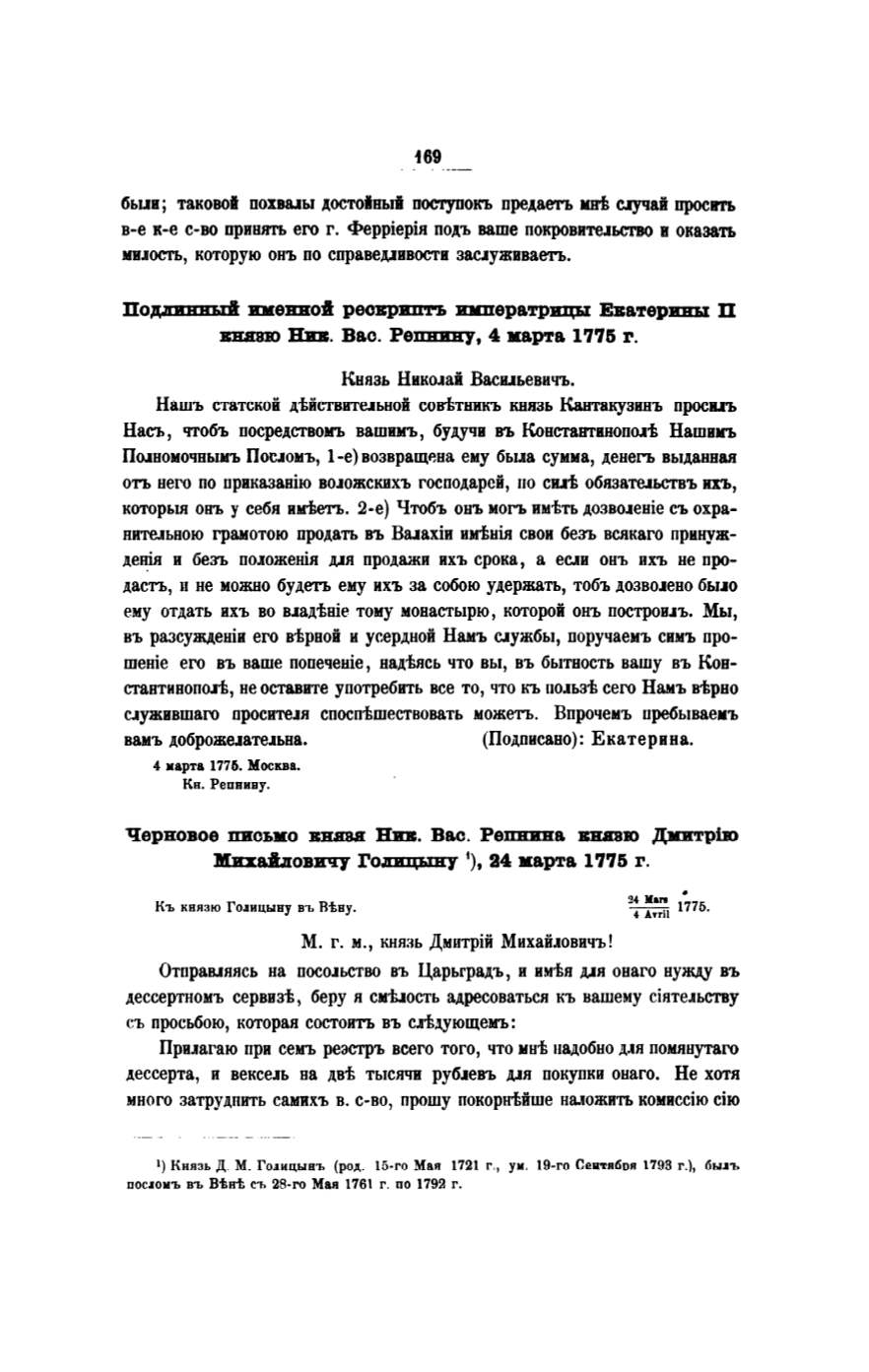 Къ князю Го.1ицыву въ R-tвy.