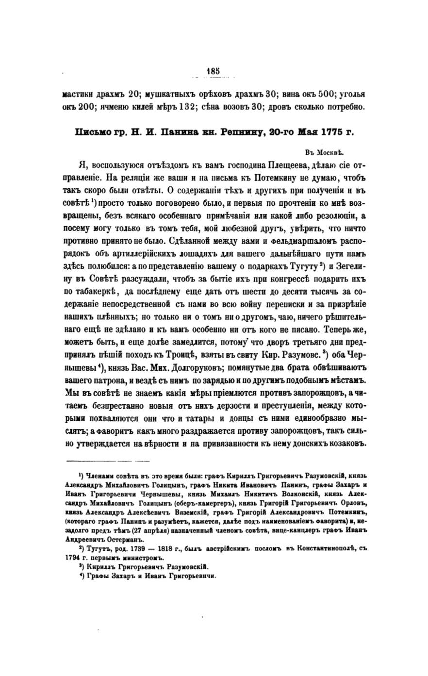 Ч.аеваки совi>та въ зто время бьuи: граФЪ Кири.I.IЪ ГригорьевичЪ Раэуковскil, RИRЗЬ