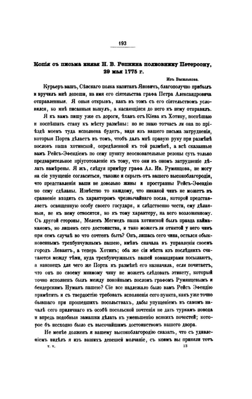 вамъ Рейсъ-ЭФендiемъ по сему пункту неосвовате.1ьные резоны суть то.1ько