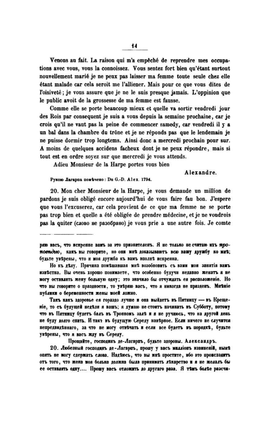 20. Mon cber Monsieur de la Harpe, je vous demaude un million de