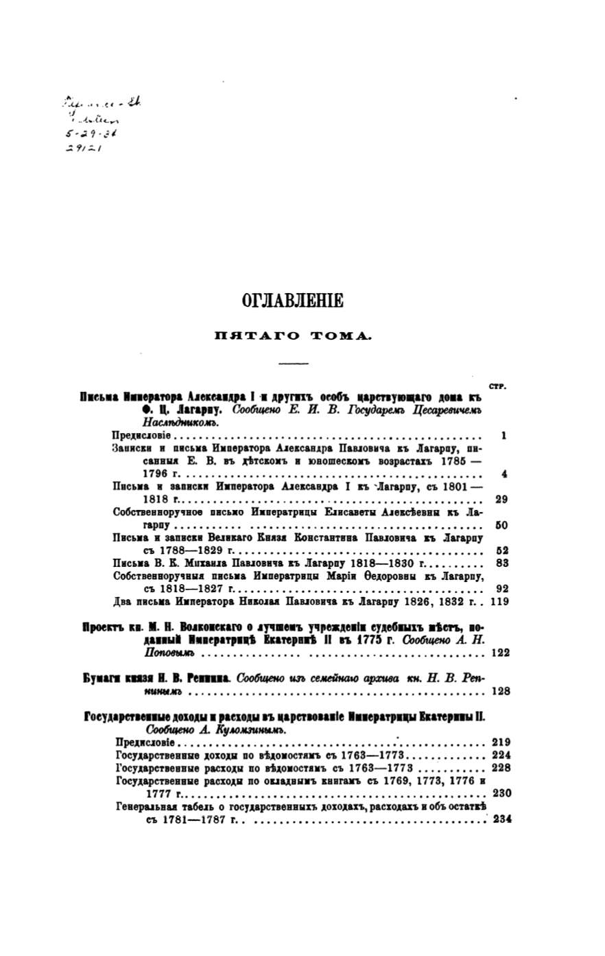 3аuискв и nисыrа Императора АlексавАра Паuовнча къ Jlarapпy, пв