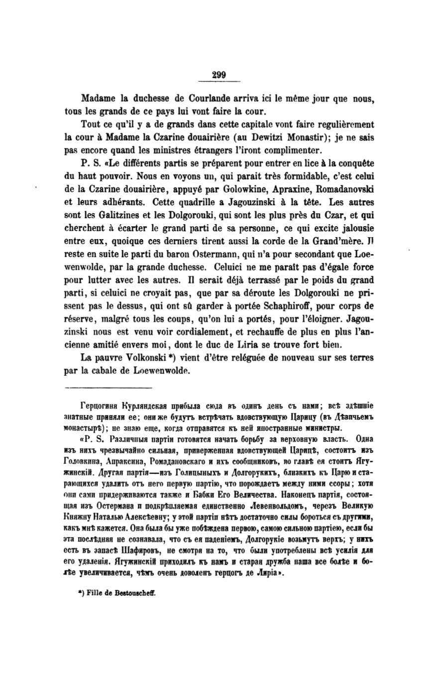 de la Czarine douairiere, appuye par Golowkine, Apraxine, Romadanovski