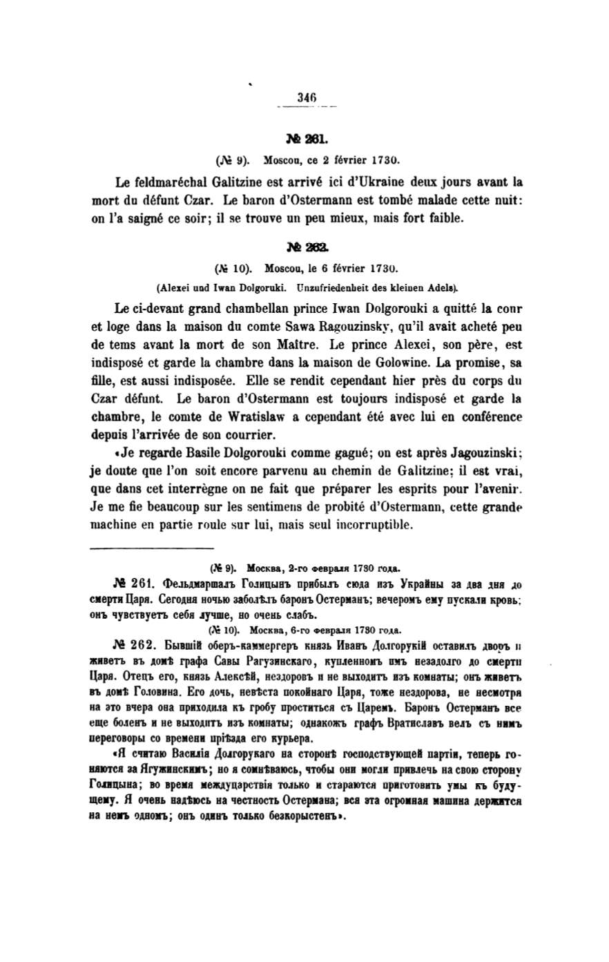 (J\! 10). Moscou, le 6 fevrier 1730.