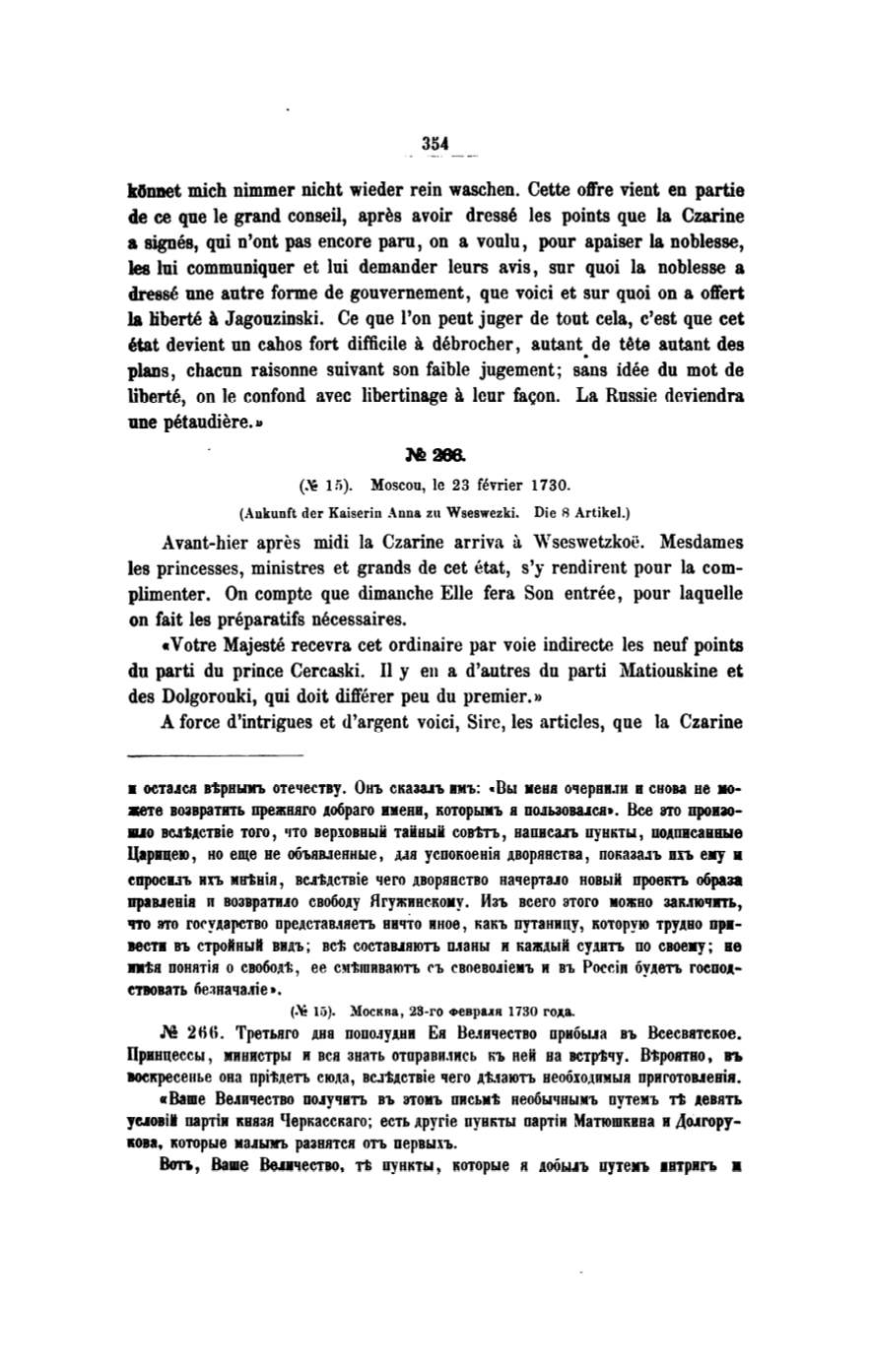 force d'intrigues et d'argent voici, Sit·c, les articles, que la Czarine