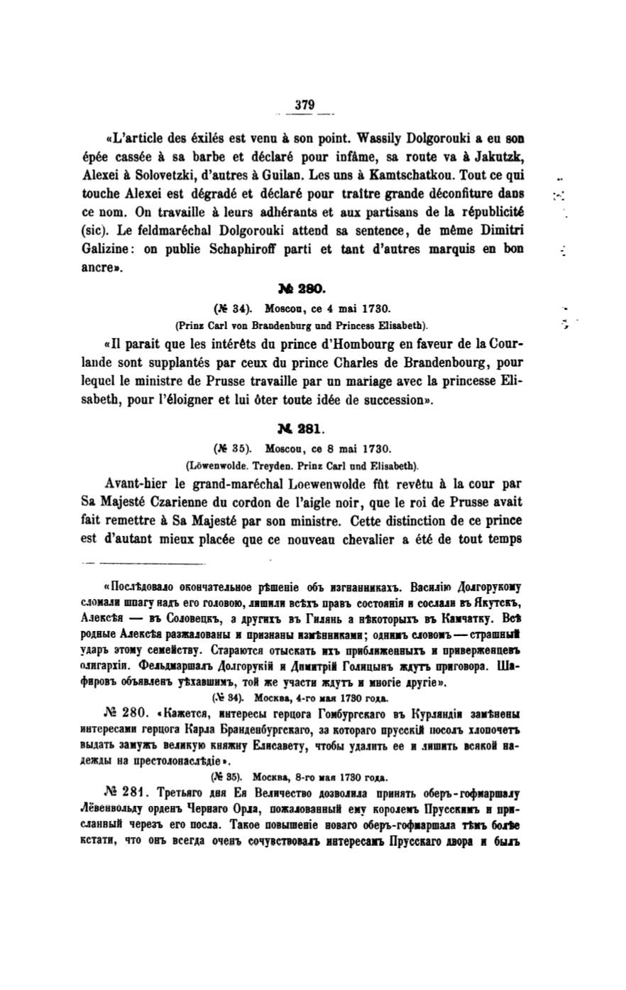(sic). Le feldmarechal Dolgorouki atteod sa sentence, de