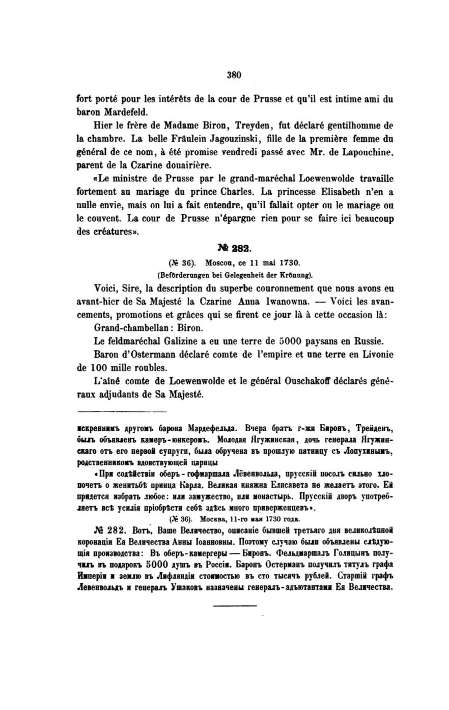 щiа произвоАства : Въ оберъ-камерrеры- Бировъ. Фе.tьдмарmа.Iъ ГоJицынъ позу