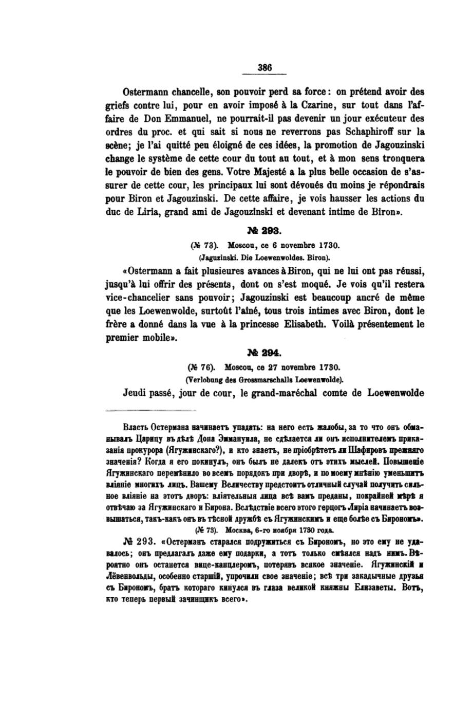 отвtчаю за Ягужввскаго н Бирона. Вслtдствiе всего этого герцоrъ Аврiа вачвнаеть воа