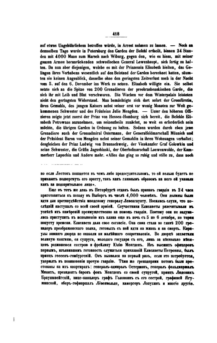 setzte sich an die Spitze von 200 Grenadieren der preobrashenskischen Garde, die