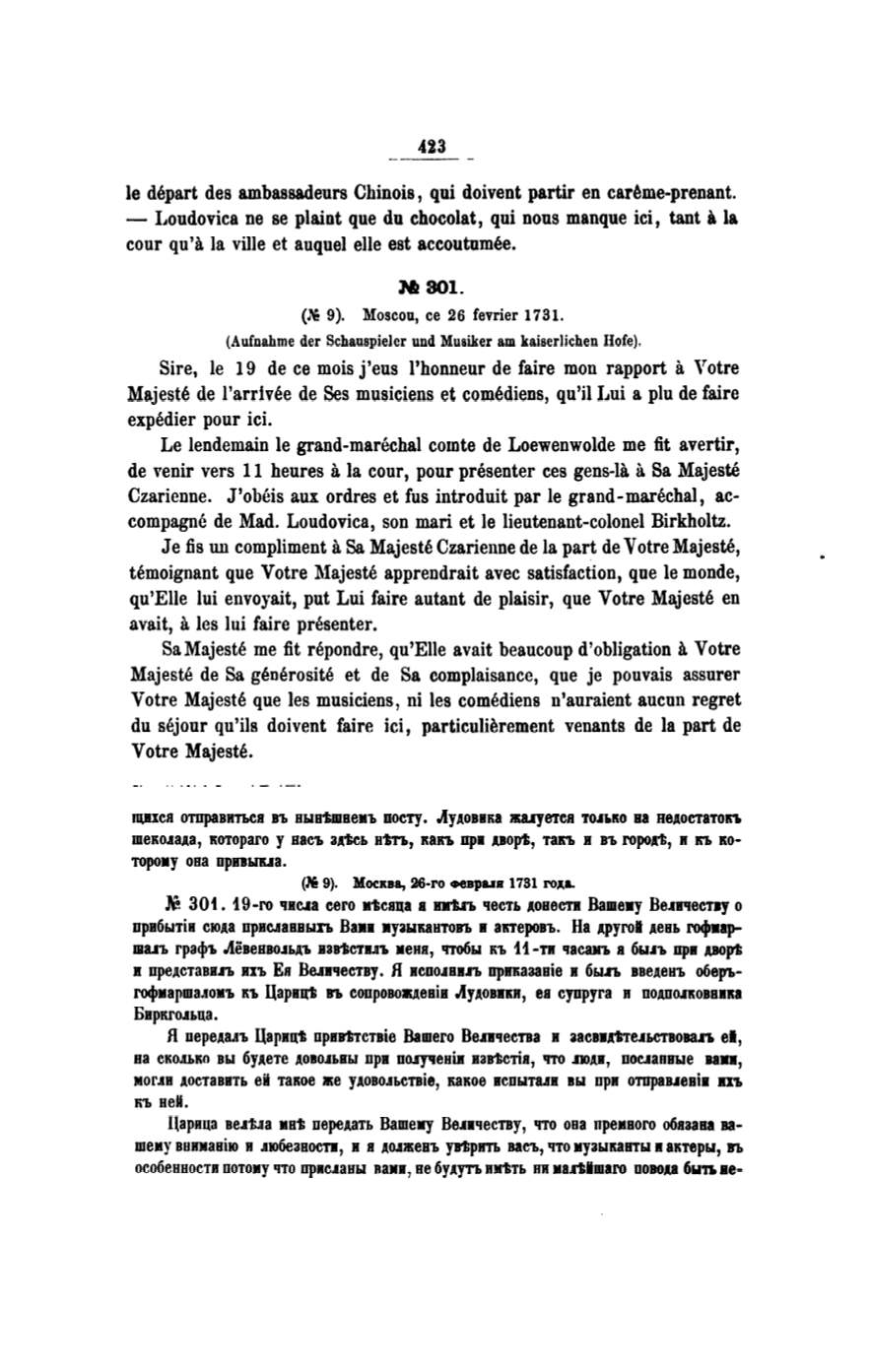 Czarienne. J'oheis aux ordres et fus introduit par le grand-marechal, ac–