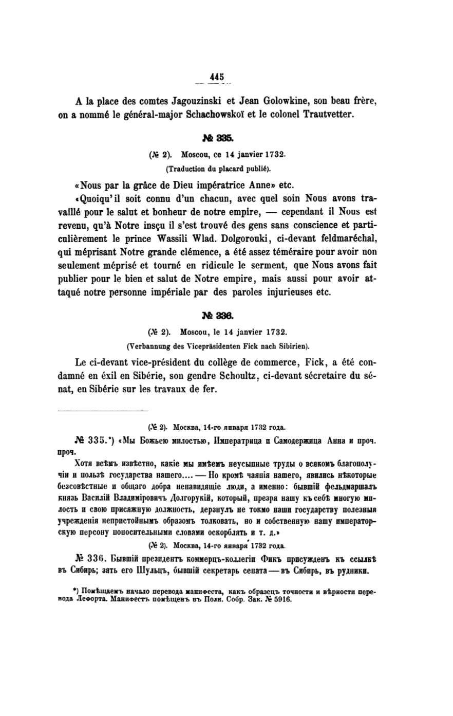 culierement le prince Wassili Wlad. Dolgorouki, ci-devant feldmarechal,