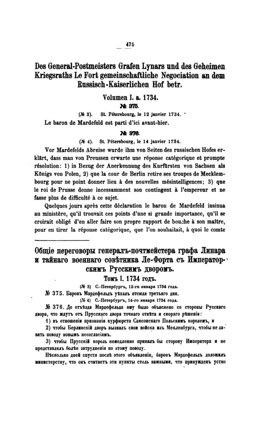 Vor Mardefelds Abreise wurde ihm voo Seiten des russischen Hofes er–