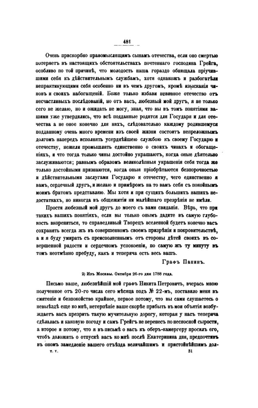 Письмо ваше, .аюбезнtйmiй мой граФЪ Никита Петроввчъ, вчерась мною