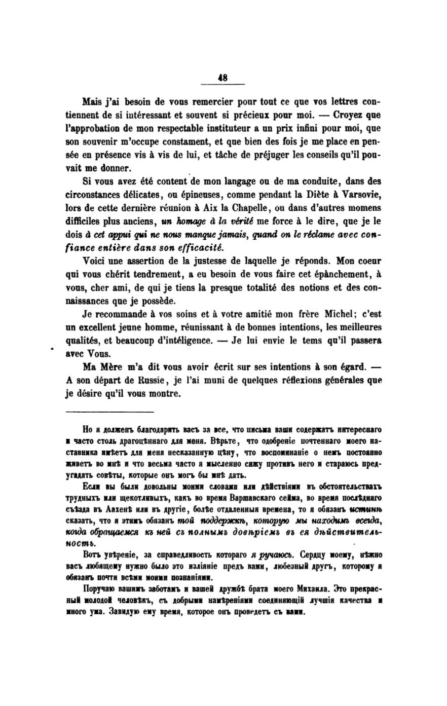 Поручаю вашимъ заботамъ в вашеll .~.руж6t брата моего МихаиJа. Зто прекрас