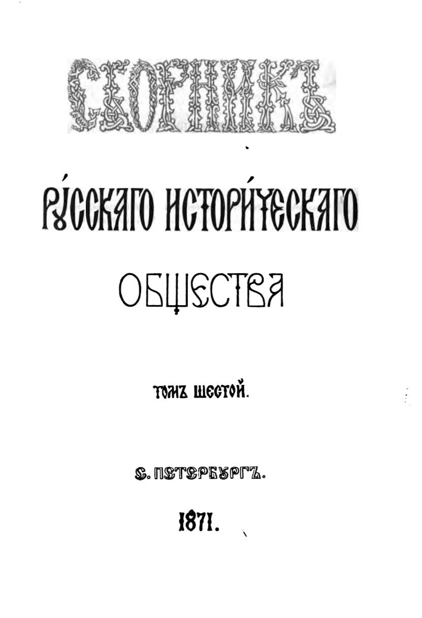Сборник Русского исторического общества. Том шестой - page 1