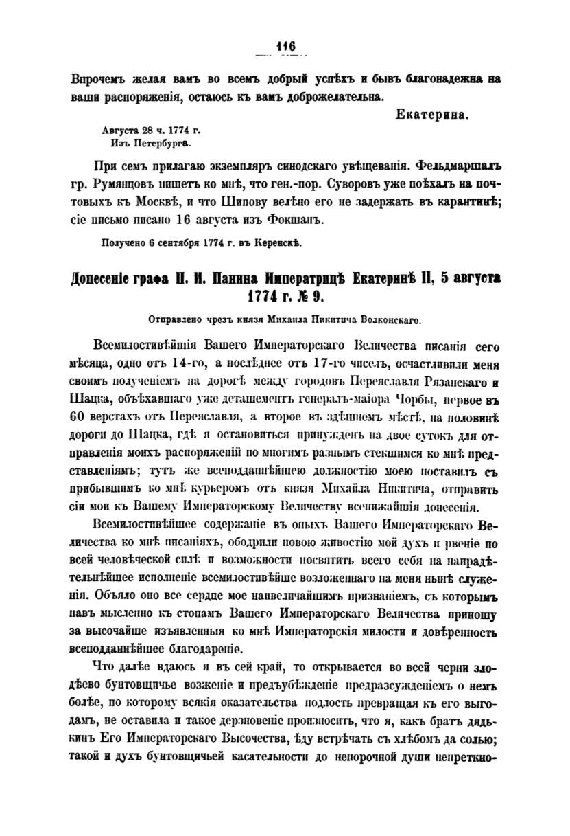 гр. Ру.мшщовъ нпшетъ ко мнt, что ген.-пор. Суворовъ уже поtх8.1Ъ на поч