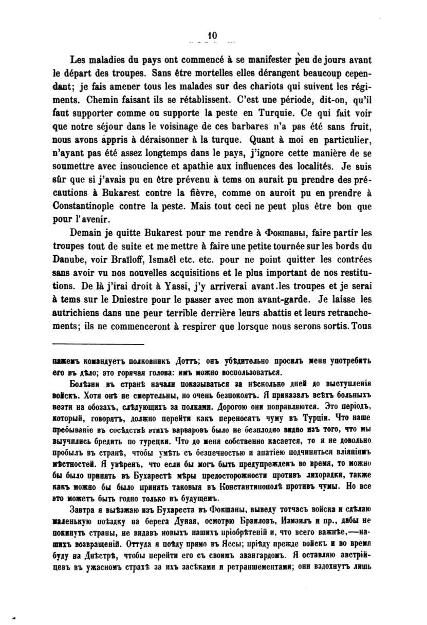 Завтра в выtажаю И3'Ь Бухареста В'Ь Фокшаны, выведу тотчасъ воИска и сдt.lаю