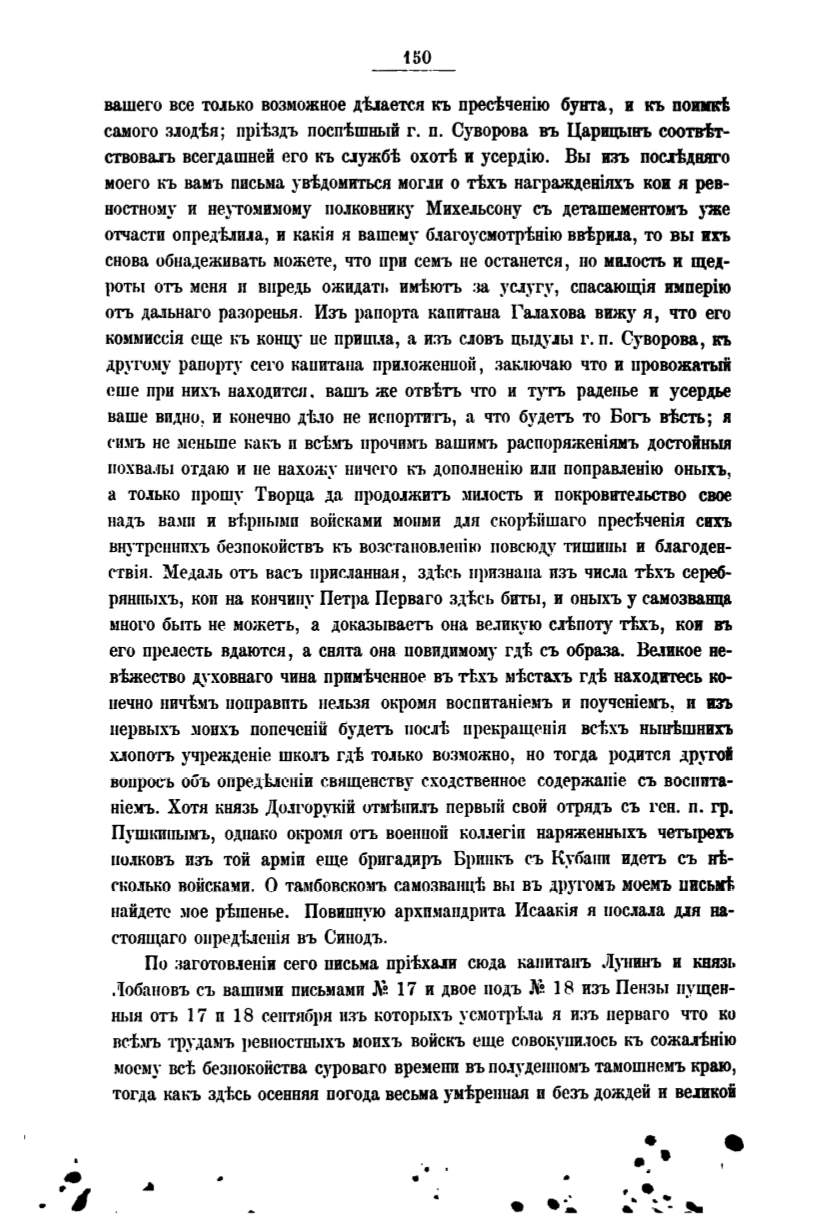 самого з;юдtя; прitадъ поспtшный г. п. Суворова въ Царицывъ соотвiт