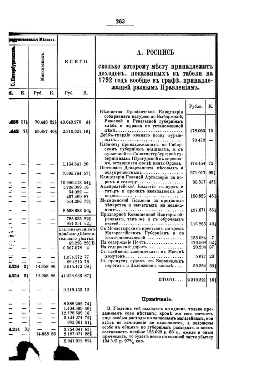 особо въ общихъ по губернiпмъ рас:хо.s.а:хъ и коихъ