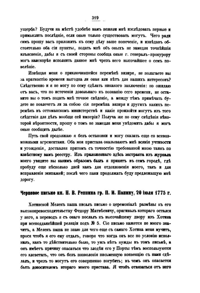чить, а Ме.tекъ паша не знаю д.1я чего еще съ самаrо Хотина меНR муЧIIТ'Ъ,