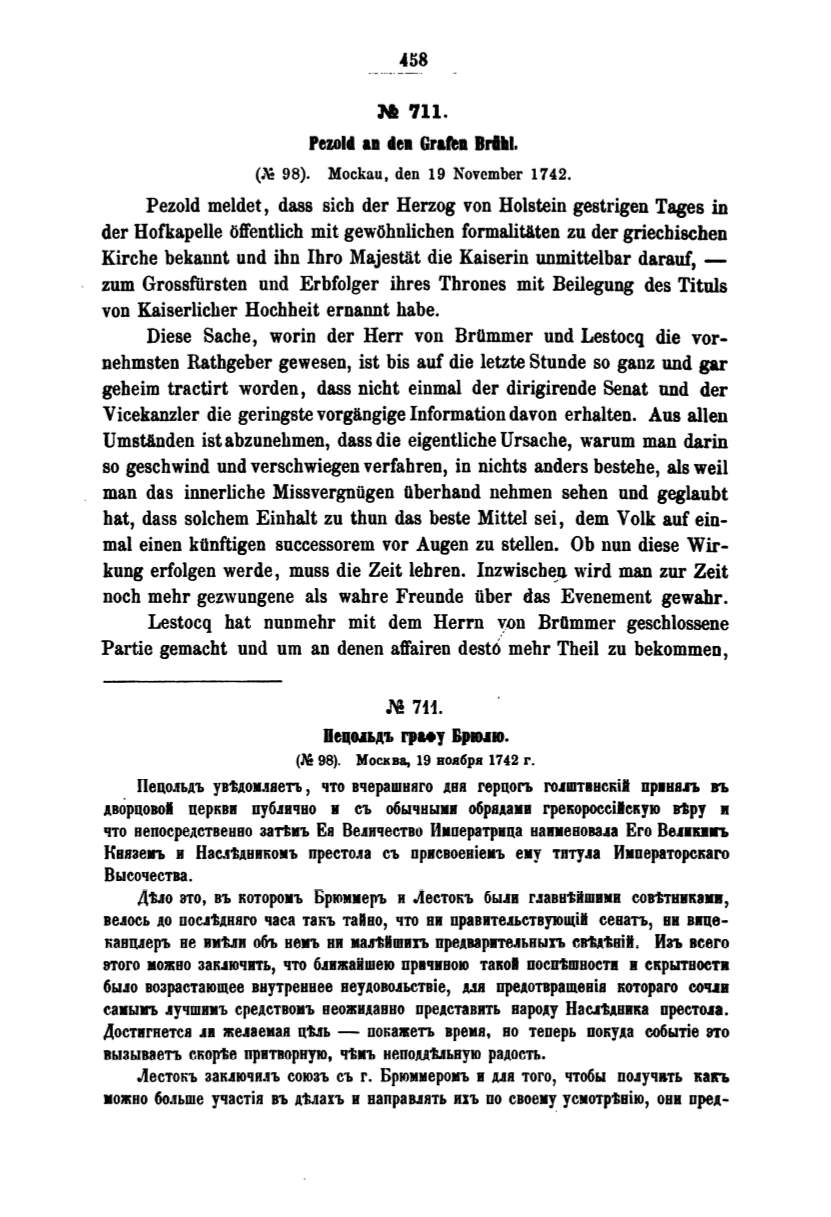 Lestocq bat nunmehr mit dem Herrn v.-on Brommer gescblossene