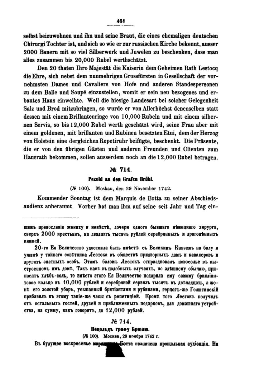 Hansrath bekommen, sollen ausserdem noch an die 12,000 Rubel betragen.