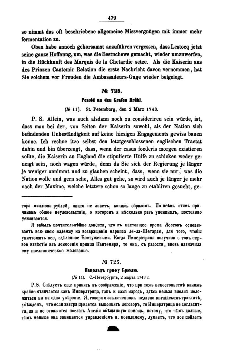 Oben habe annoch gehorsamst anzufilhren vergessen, dass Lestocq jetzt