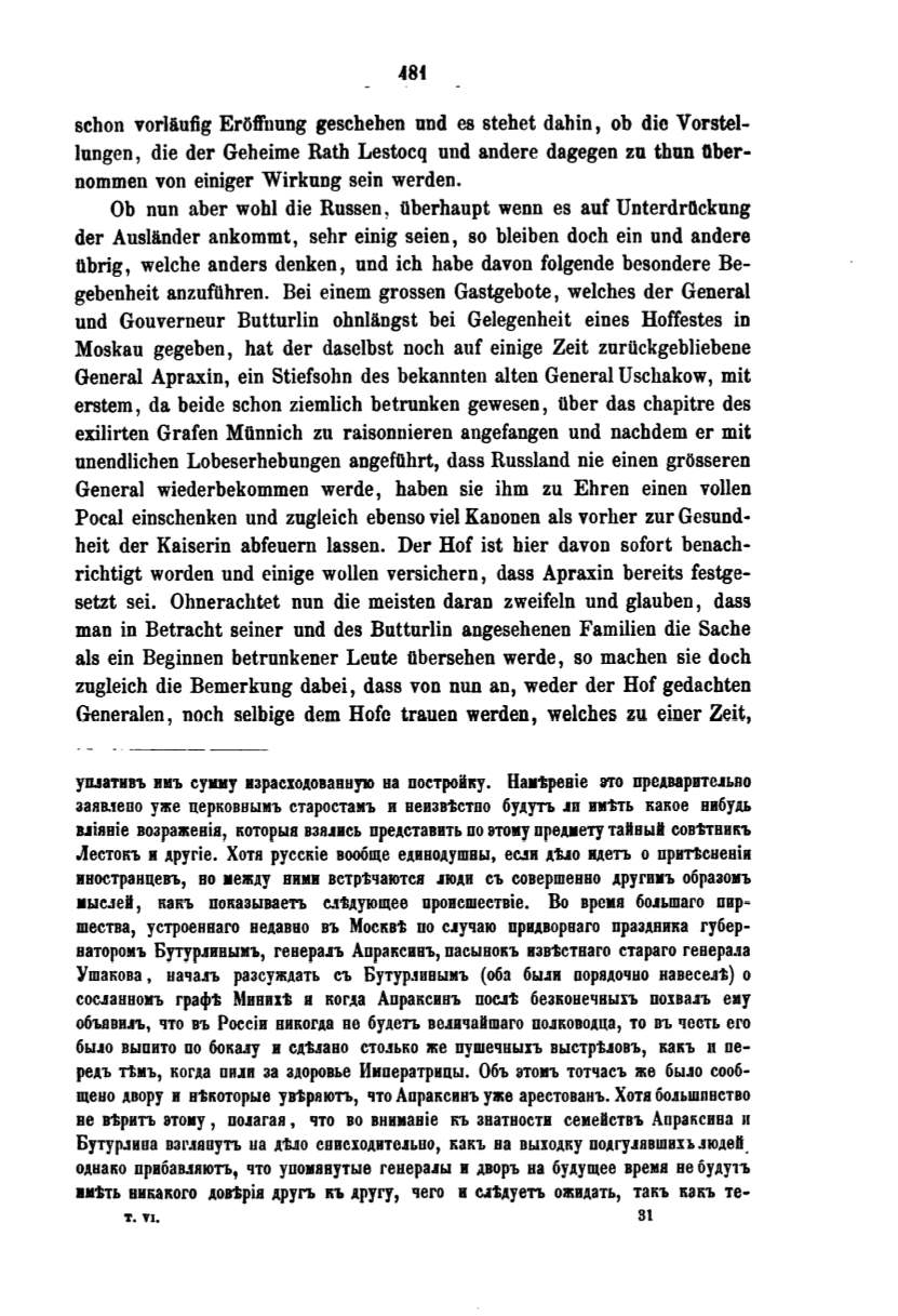сос.sанномъ rpaфt Минихt и коr-'а Апраксинъ пOCJt безконечныхЪ похва.1ъ еиу