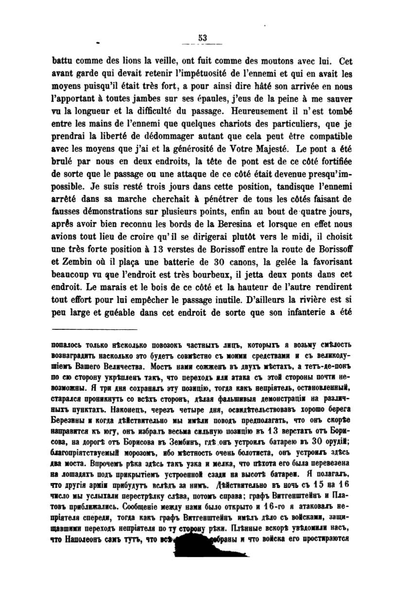 mieM'Ь Вашего Величества. Мостъ нами сожжеВ'Ь въ двухъ мtстаn, а тетъ-1е-поВ'Ь