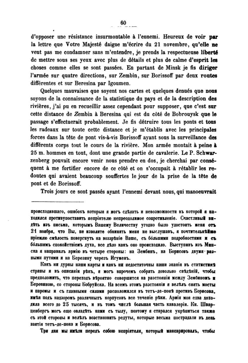 направв.rь армiю въ четыре стороны: на Зембинъ, на Борнсов'Ь двумя·