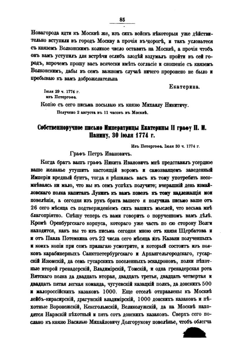 находВТСJI, какъ вы то взъ письма сегоАНЯ мною отъ КВJIЗЯ Щербатова в