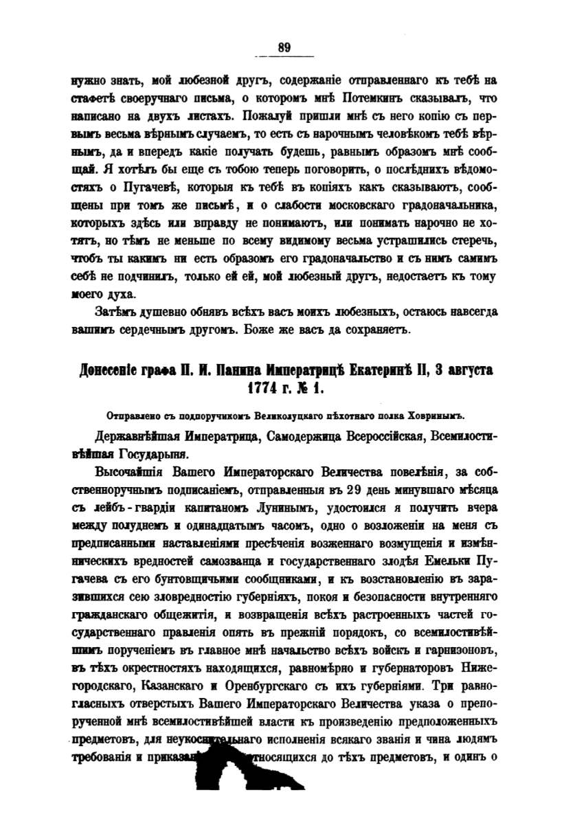 аrяхъ о Пугачевt, которьш къ тебt въ копiяхъ какъ сказывають, сооб